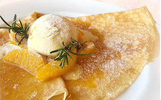 自家製スモークベーコンとチーズに湯梨浜町産卵を使用した、そば粉を使ったフランス生まれのお料理です。